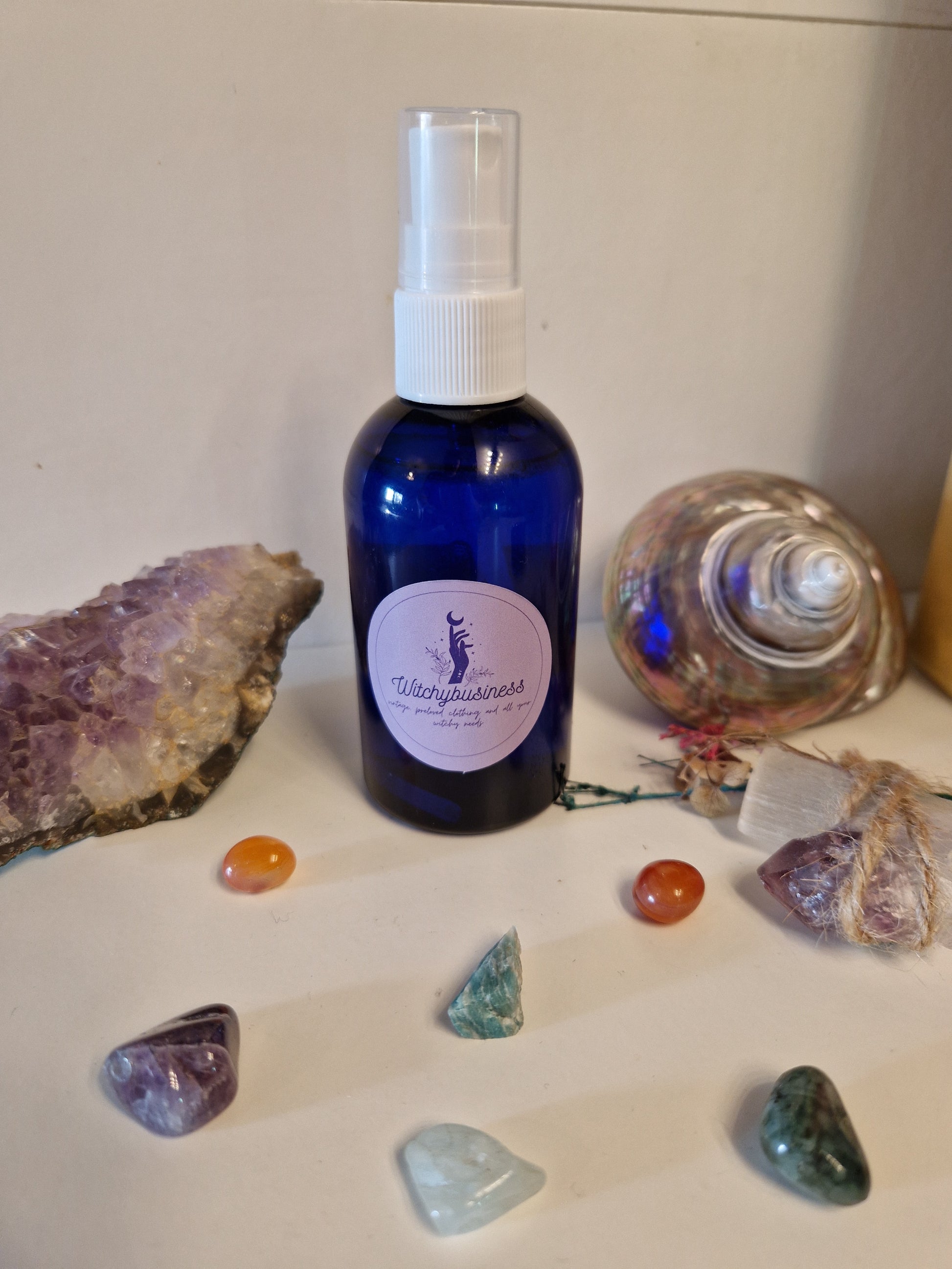 Essential oil sprays are handmade on a pure essential oil and witch hazel blend making them skin safe to wear as body spray aswell as a beautiful room spray